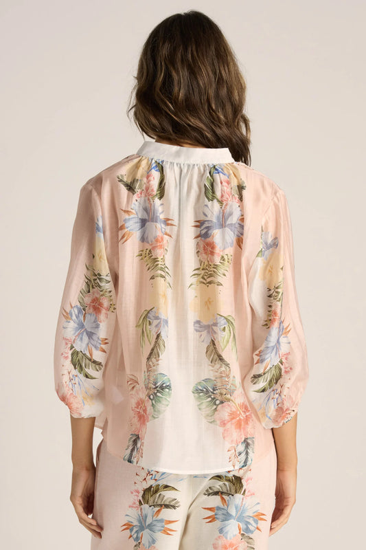 Solara Split Neck Blouse | Pink Print