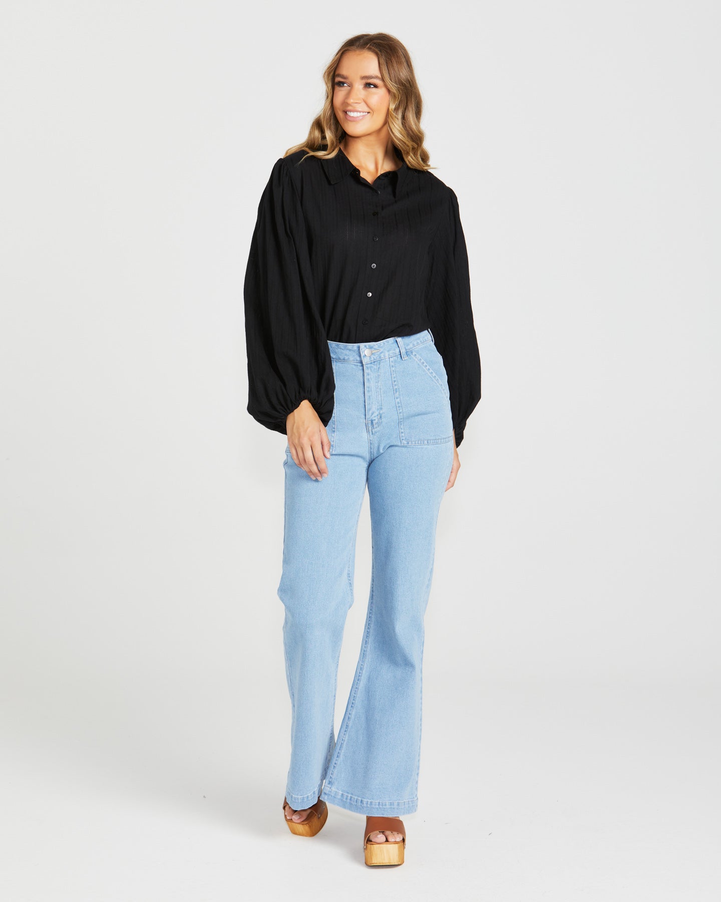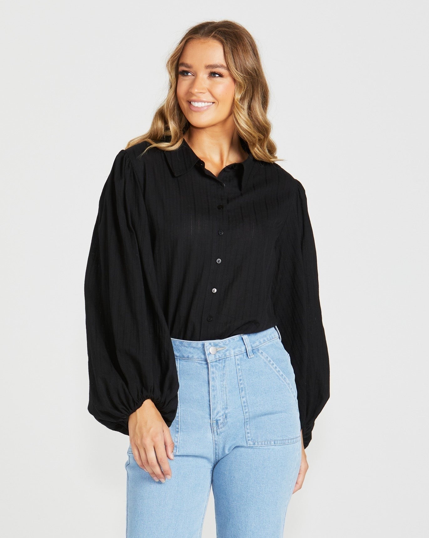 Meet the Adeline Shirt from Sass, your new wardrobe essential. This regular-fit shirt boasts long balloon sleeves and a stylish center front button closure. Crafted from textured cotton fabric, it offers both comfort and a touch of sophistication. Perfect for pairing with jeans or skirts, elevate your everyday look with this versatile piece that transitions effortlessly from office hours to after-hours.