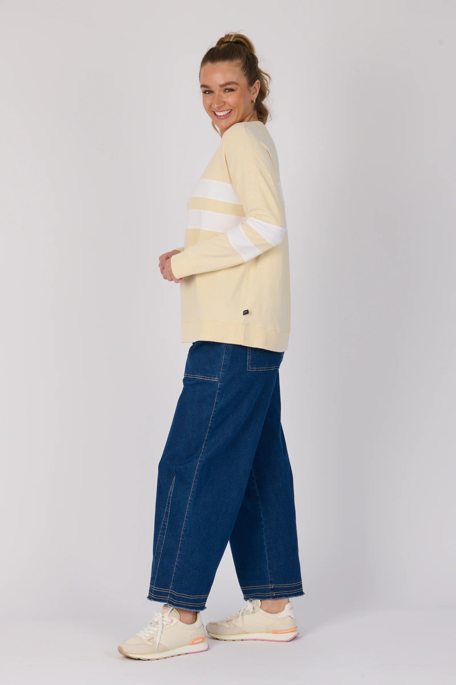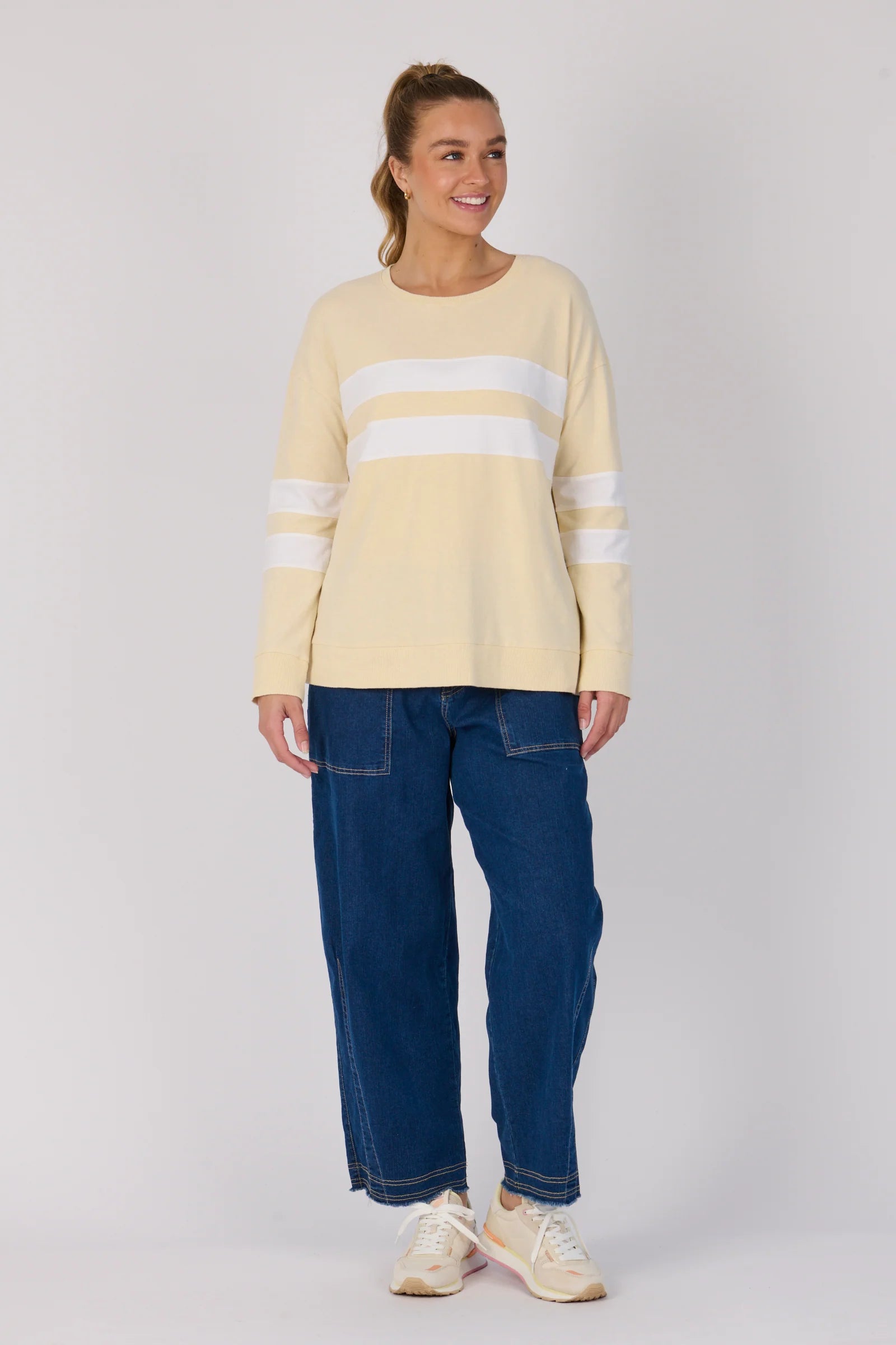 Panel Stripe Long Sleeve Tee | Stone Combo
